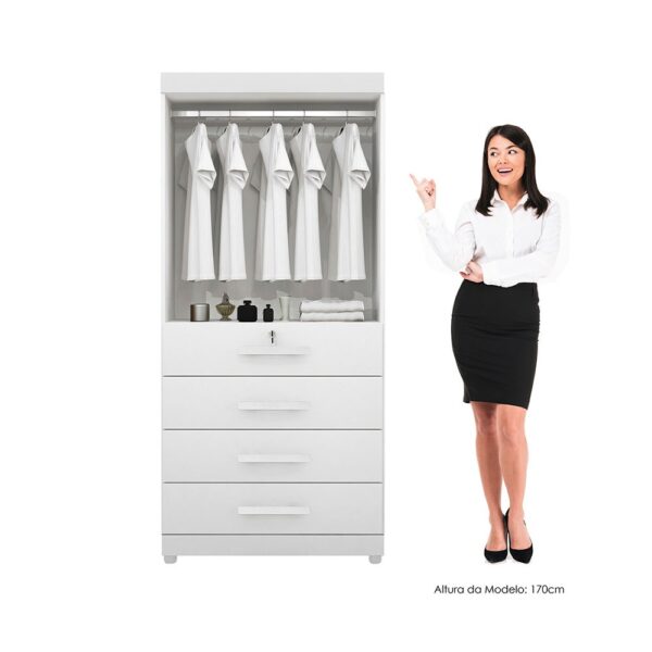 O Guarda-Roupa New Maia com seu lindo design trás charme e elegância a qualquer ambiente, possui 4 gavetas e 2 portas, contém chave que garante sua privacidade, com cabideiro em alumínio tem muito espaço para seus cabides, acomodando todos seus pertences, ficando muito bem-organizado. Sua fabricação utiliza a linha mdp perffect, que une a sustentabilidade à inovação tecnológica, proporcionando durabilidade e fácil limpeza; inspirando sofisticação ao mobiliário. Sua pintura UV conta com boa resistência, é fácil de limpar e é ecologicamente correto, pois utiliza madeira de reflorestamento, evitando o desmatamento.