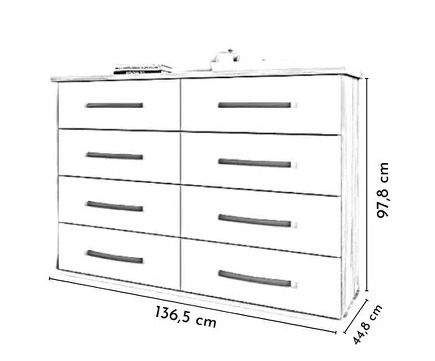 A Cômoda Jade da Moveis Primus veio para agregar mais estilo ao seu quarto ou para o quarto do seu bebe! Ela possui 8 gavetas que podem servir para uma só pessoa ou para o casal. Além de auxiliar na sua organização pessoal, ainda libera espaço no guarda-roupas. Seu tampo poder permitir que cosméticos ou produtos que tenham facil e rapido acesso, ou simplesmente, um ótimo local para colocar aqueles porta-retratos e enfeites que não cabem mais na sua estante. Feita em madeira MDP reforçada, e uma cômoda grande e bem resistente, sem contar que ir tornar o ambiente mais harmonioso e bonito!