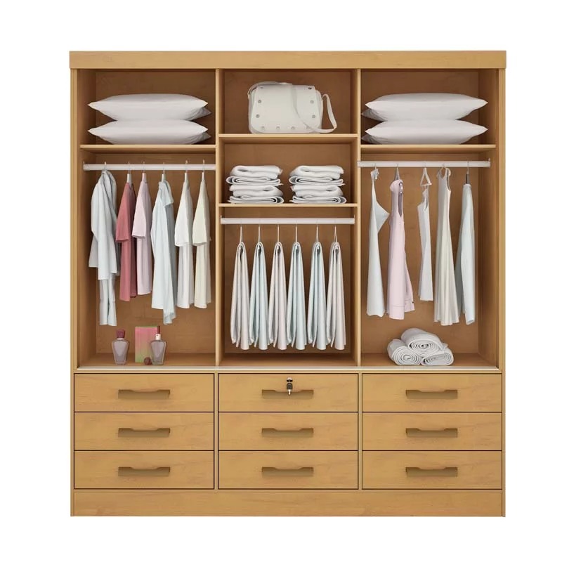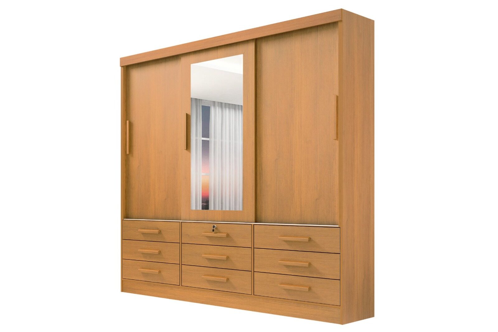 Guarda Roupa Meridian com 01 Espelho, 3 Portas e 9 Gavetas D’Doro Móveis