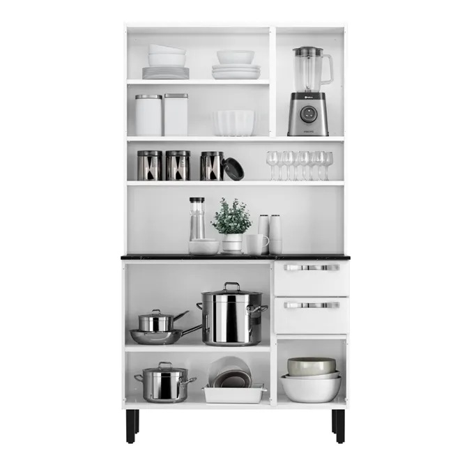 O kit cozinha Pratika reúne design, sofisticação e praticidade em um único produto. Conta com sapatas de nivelamento, corrediça telescópica que permite um deslizar mais suave, além do tampo resistente á altas temperaturas (até 120 cº) e pintura eletrostática.