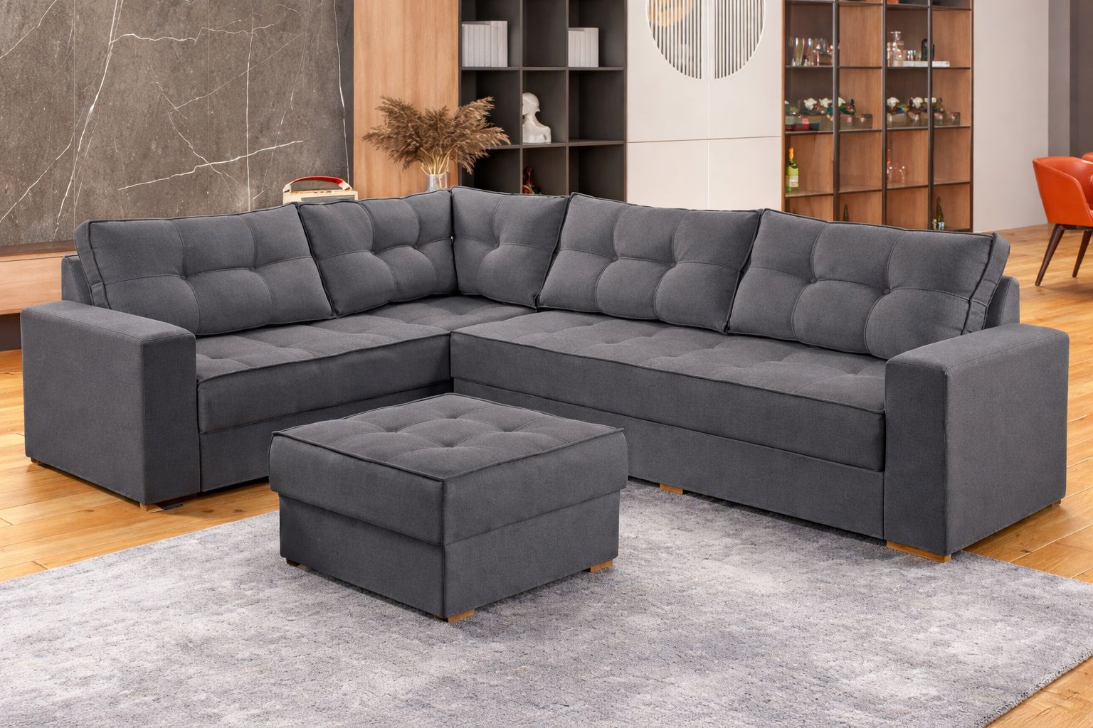 Sofa canto Com puff Almofadas soltas 270-230 cm Lisboa D sala Grafite